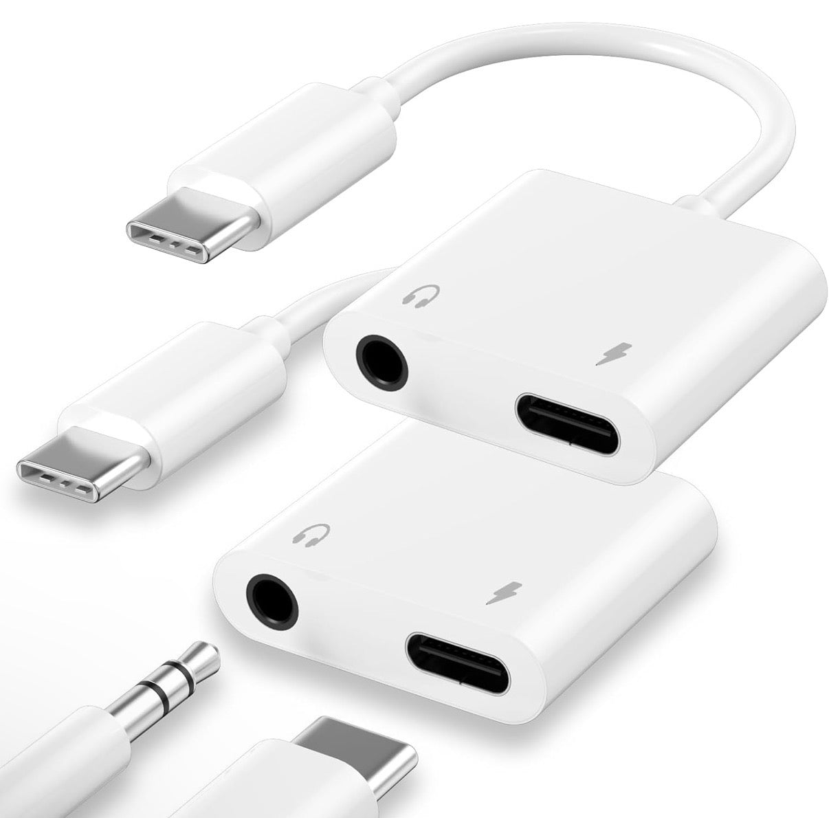This 2-pack of USB-C to 3.5mm Headphone and Charging Adapters provides a versatile solution for your audio and power needs. Designed specifically for the iPhone 15 and 16 Series, each adapter allows you to simultaneously connect your favorite 3.5mm headphones for listening to music or making calls, while also charging your device through its dedicated USB-C port. This convenient accessory ensures uninterrupted entertainment and communication, making it an essential item for users of compatible iPhone models. Its compact design also makes it easy to carry wherever you go.