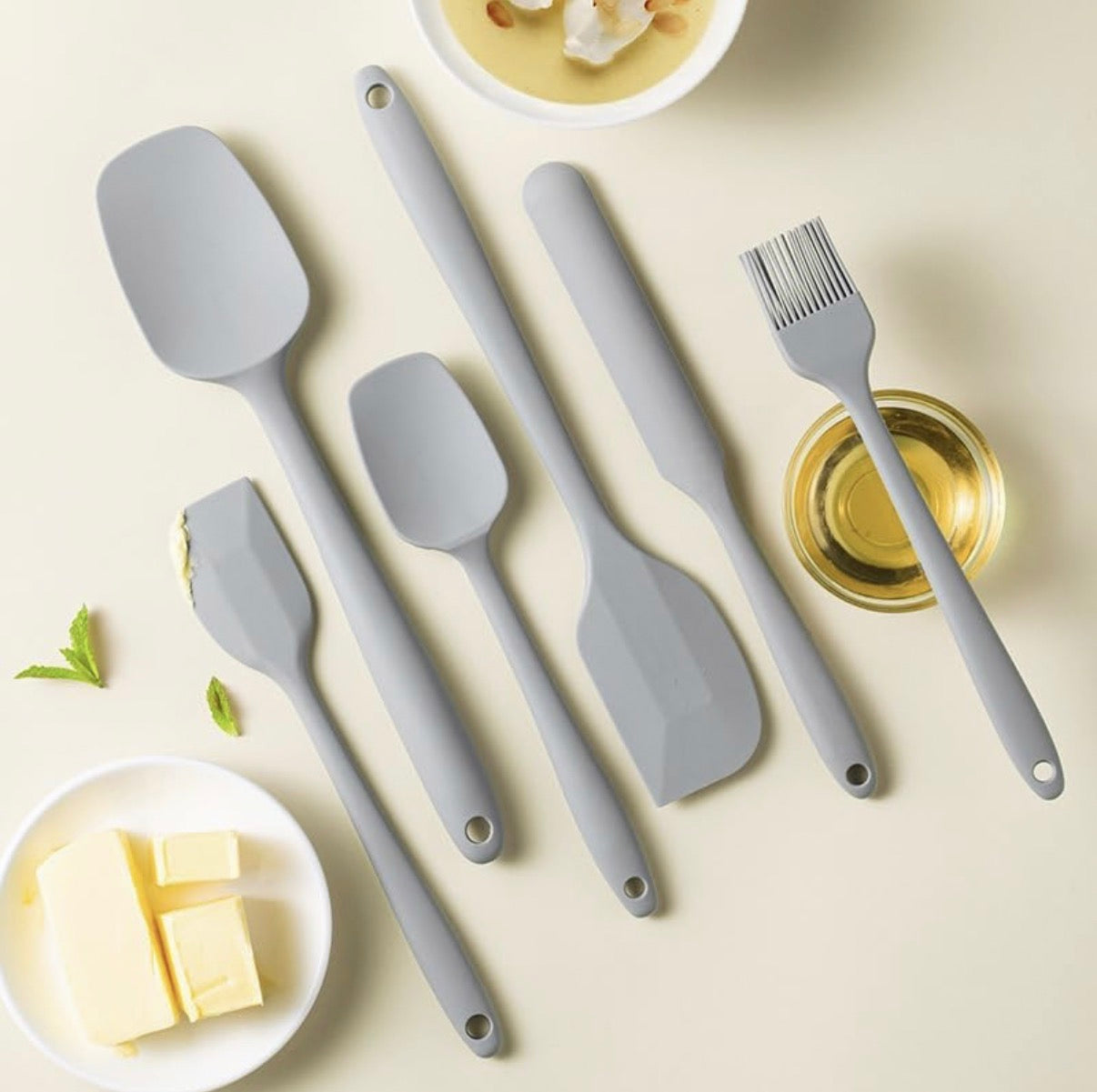 This Grey 6-piece Silicone Spatula Set is designed for versatility in cooking and baking. Made from food-grade silicone, these spatulas are non-stick and heat-resistant, making them suitable for various applications. Their durable construction ensures easy mixing and turning, enhancing culinary efficiency and precision.